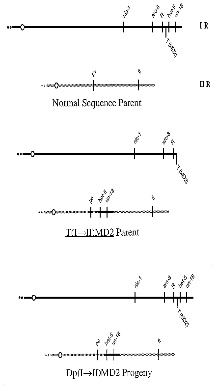 Table 1. Analysis of the novel round ascospore progeny originating from Dp(I->II)MD2 X normal sequence.