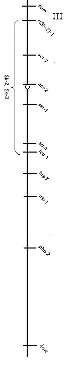 Figure 1. Loci of linkage group III that are relevant to Sk-2 and Sk-3. Meiotic crossing