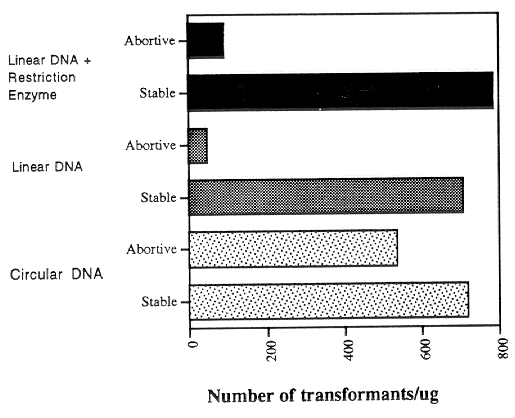 Figure 1. The effect of DNA structure and addition of restriction enzymes on transformation