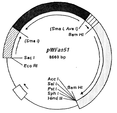 Figure 1. Construction of the antisense RNA expression vector pWAFas51. A 380 bp BamHI/AvaI