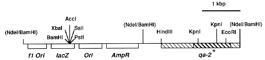 (not shown). Selected sites within the qa-2+ insert are indicated. The plasmid is drawn
